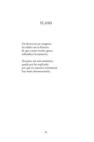 FLASH Un doctor en un congreso ha salido con la historia de que comer mucho queso reblandece la memoria. Así pues, sin más misterios, queda por fin explicado por qué en nuestros ministerios hay tanto desmemoriado. 86